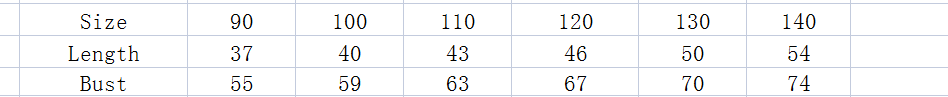| 5–6 years | 110–116 | 5–6Y | 6 | 110–116 | 6Y |
